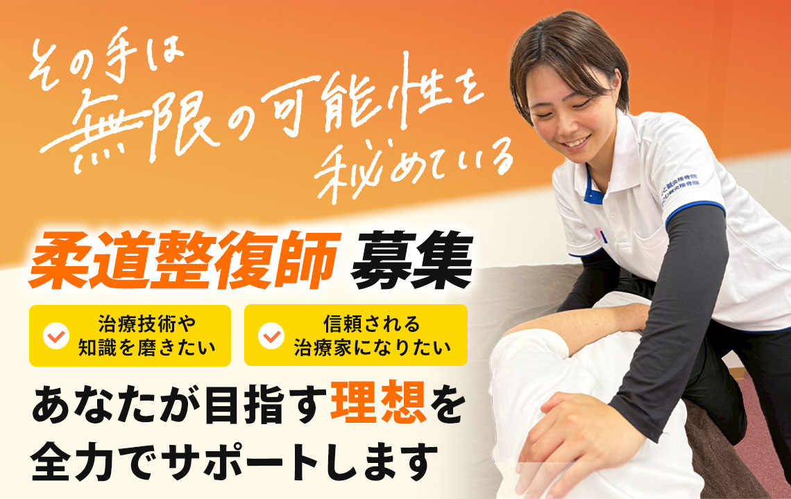 | 給与 | 柔道整復師:25万円~ 柔道整復師+鍼灸師:26万円~ 院長:31万円~ ※入社後、研修期間は-2万円(社内規定のキャリアアップ・評価制度により昇給・昇進します) ※Wライセンス」+1万円支給 |